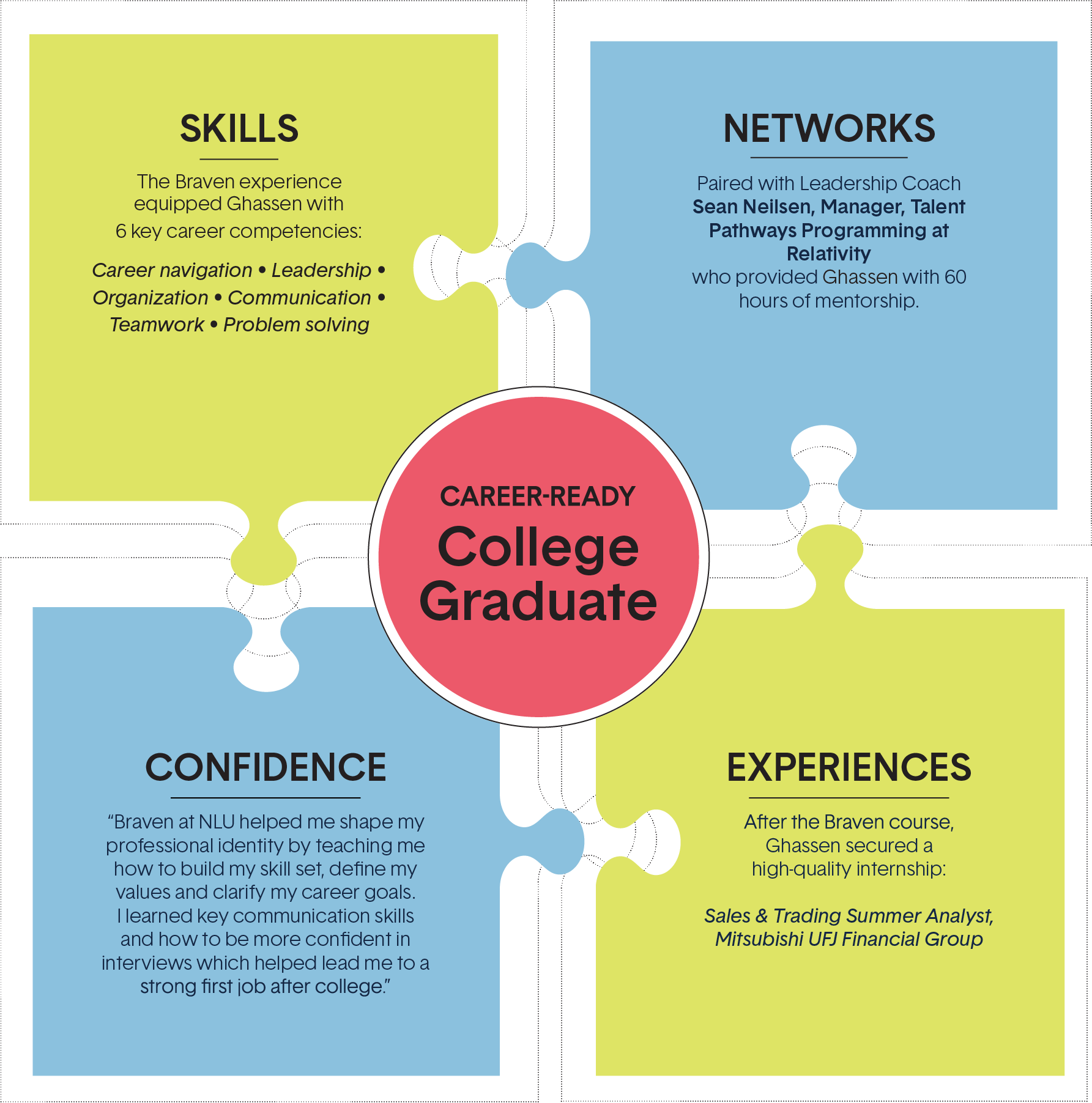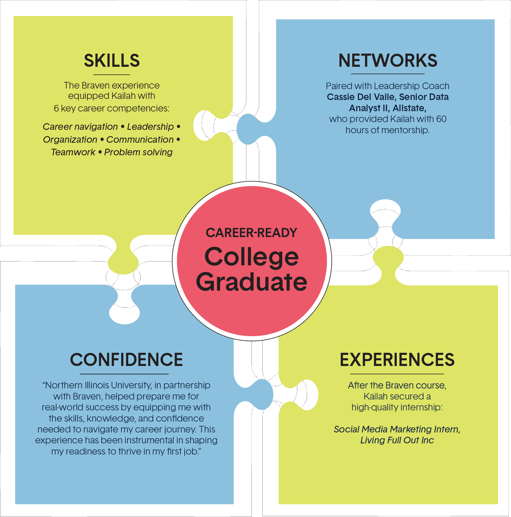 These are closely aligned with the six career-readiness skills Braven helps students develop in the Accelerator course: