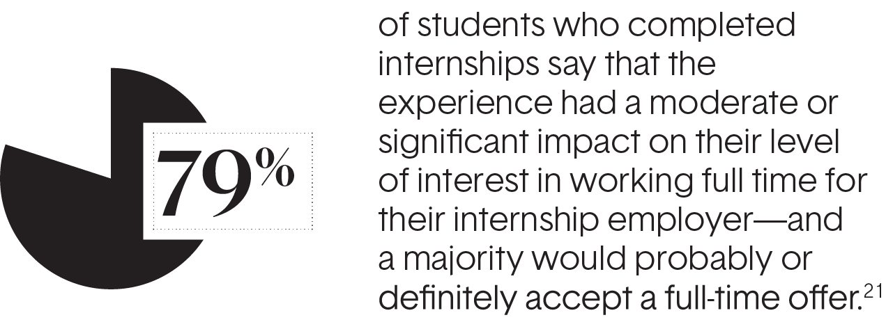 23. Clayton, Dave, et al. From College to Career: Students’ Internship Expectations and Experiences. Strada Education Foundation, 17 May 2023, www.strada.org/reports/from-college-to-career-students-internship-expectations-and-experiences. Accessed 24 Feb. 2026.
