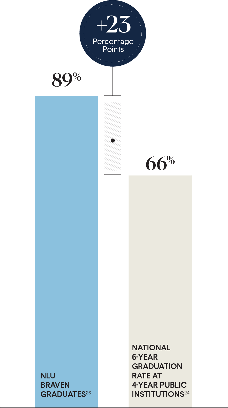 26. Six-year graduation rate of NLU Braven Fellows includes students who enrolled as first-time freshmen, not including those who took Braven as seniors, transfers, or international students. NLU is included in the six-year graduation rate calculation because the university reached a threshold of graduates to date (200+) for which we have both valid enrollment and graduation data.